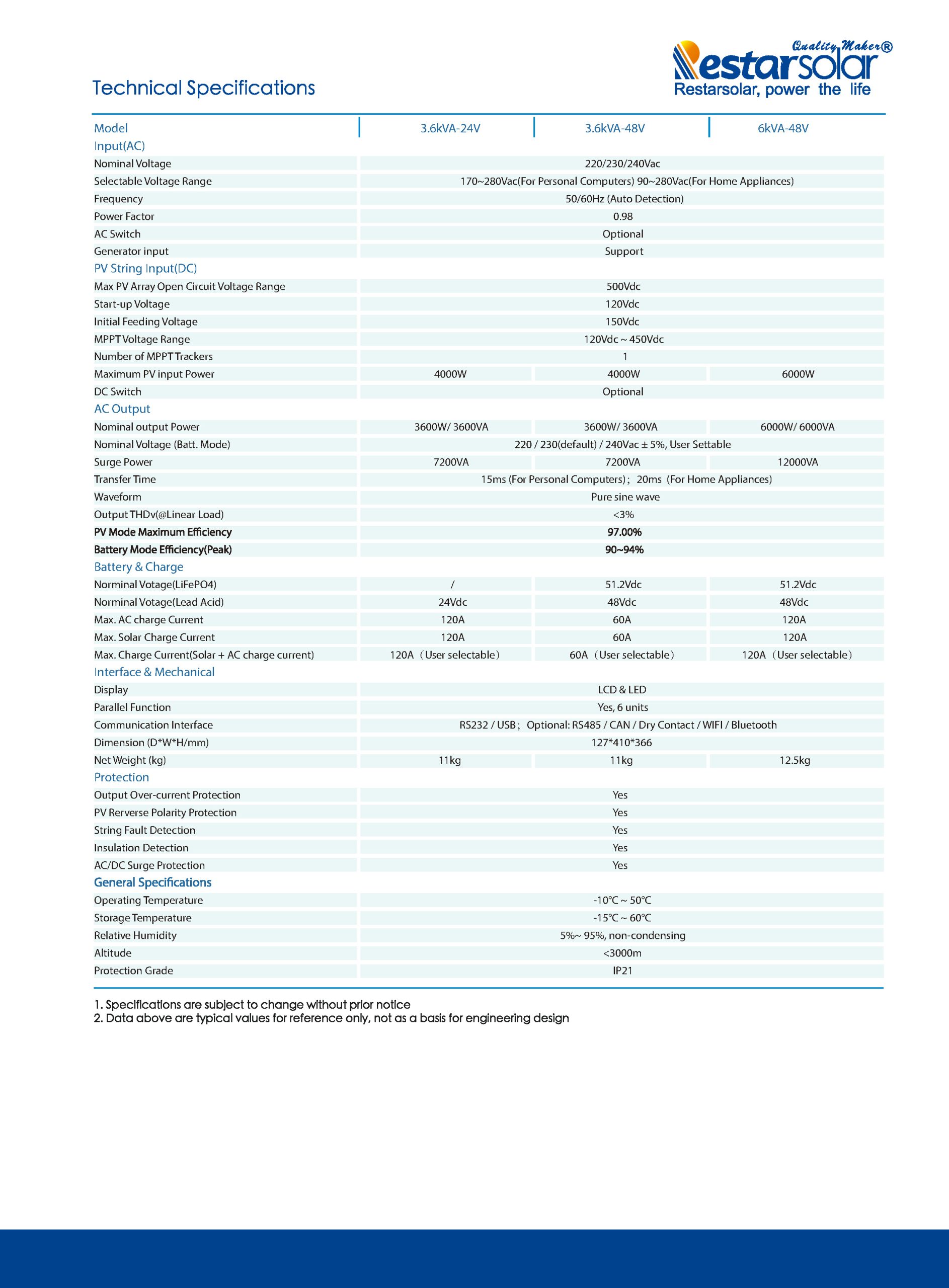 Solar Inverter RT 3.6kVA – 6kVA Off-Grid